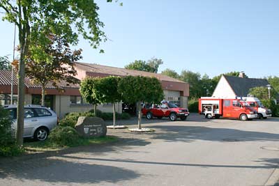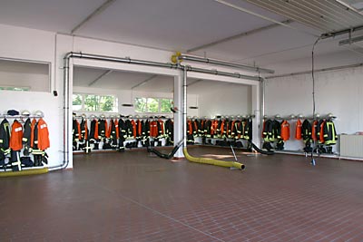 2006 erfolgte dann ein Anbau an das Gerätehaus. Der Platz für die Fahrzeuge wurde für 1 Fahrzeug erweitert. Auch haben die Kameradinnen und Kameraden nunmehr ausgiebig Platz zum Umziehen. In der Fahrzeughalle befindet sich seitdem auch eine Abluftanlage für die Abgase der startenden Fahrzeuge. Auch hier blieb der Kostenfaktor durch viel Eigenleistung der Kameraden in einem akzeptablen Rahmen. |