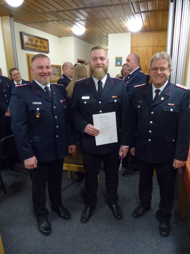Unter dem Tagesordnungspunkt „Aufnahme neuer Kameradinnen und Kameraden“ konnte sich die Wehr über 3 Neuaufnahmen und 3 Dienstverpflichtungen freuen.