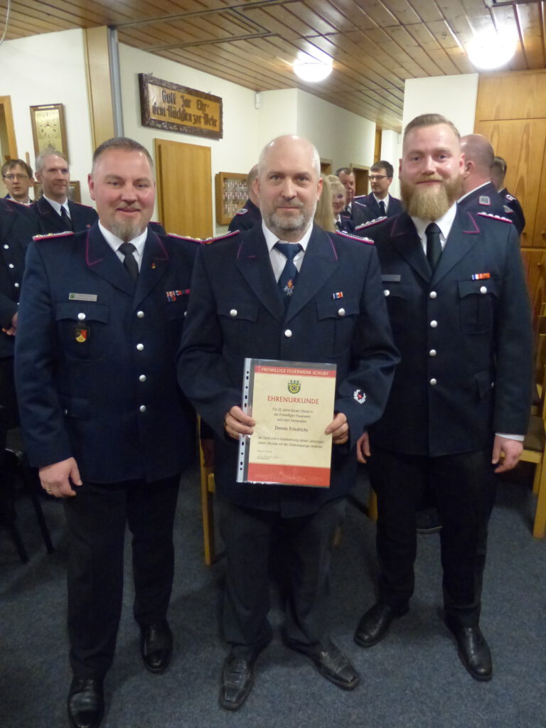 Jan-Luca Kroymann-Meyer, Felix Häußler und Dennis Friedrichs wurden zum Oberfeuerwehrmann befördert. Die Beförderung zum Hauptfeuerwehrmann bzw. zur Hauptfeuerwehrfrau erfuhren Mabel Henning, Benjamin Hue, Henrik Obenauff, Inken Gerdes und Julius Vaisnys. Stefan Mees wurde zum Löschmeister befördert. Der stellvertretende Wehrführer Jan Christian Peter „Manni“ Mielke wurde zum Hauptlöschmeister 3 Sterne befördert.