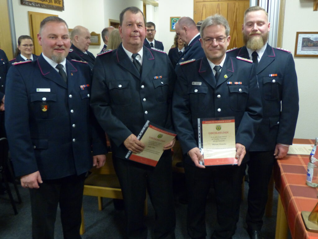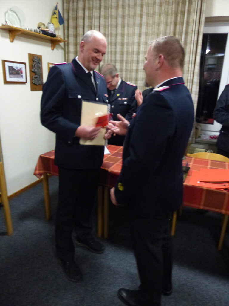 Die beiden Kameraden Volker Vogt und Axel Warnke werden vom Wehrführer in die Ehrenabteilung versetzt.