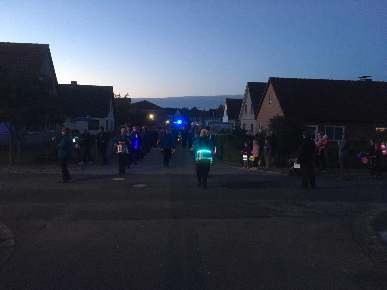 Pünktlich um 19:30 Uhr begann der Schleswiger Spielmannszug an Musik zu machen und der Laternenumzug setzte sich unter Führung der Polizei, vielen Dank dafür, in Marsch.